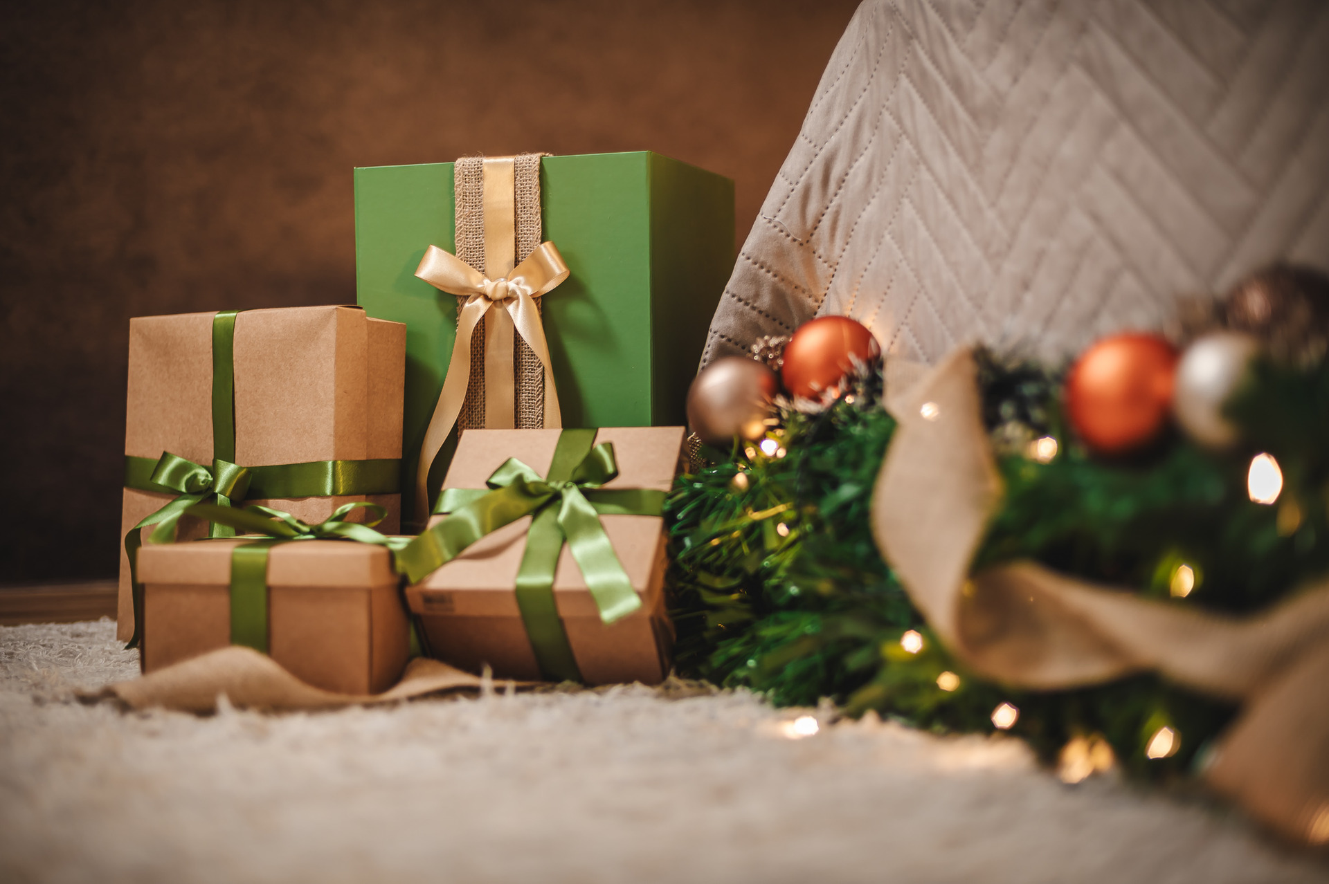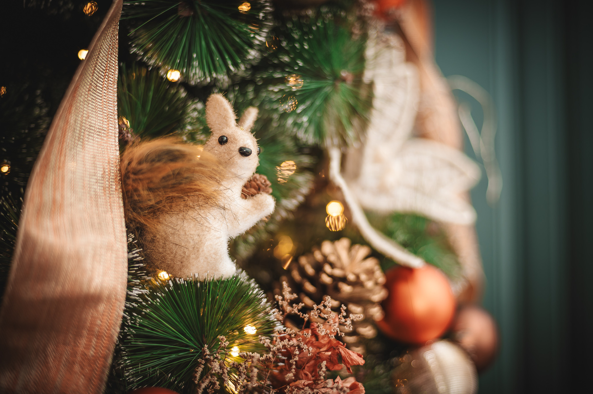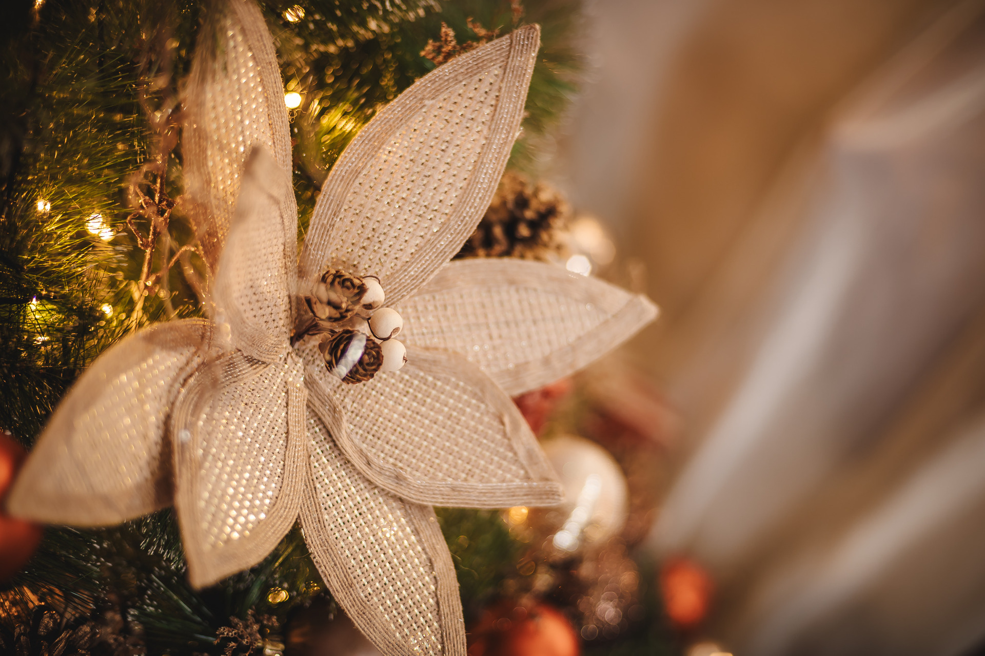 O resultado fica sofisticado e conversa com o dourado da árvore.