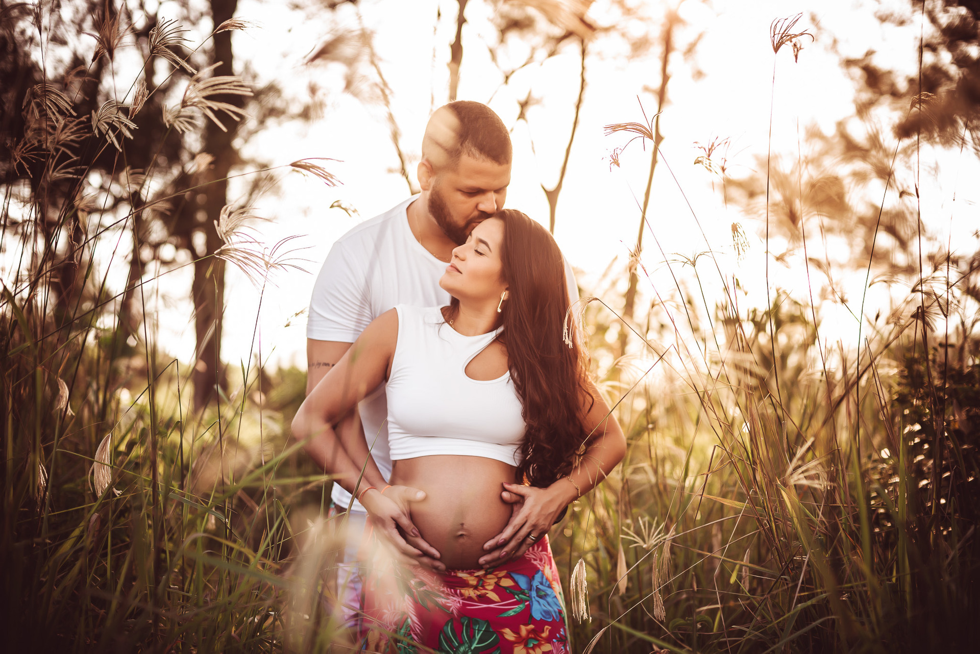 A ideia é registrar a beleza real da espera no lugar onde a vida de vocês já acontece: o sofá onde vocês descansam, a cozinha onde conversam, e, se já estiver pronto ou em preparação, o quartinho do bebê.