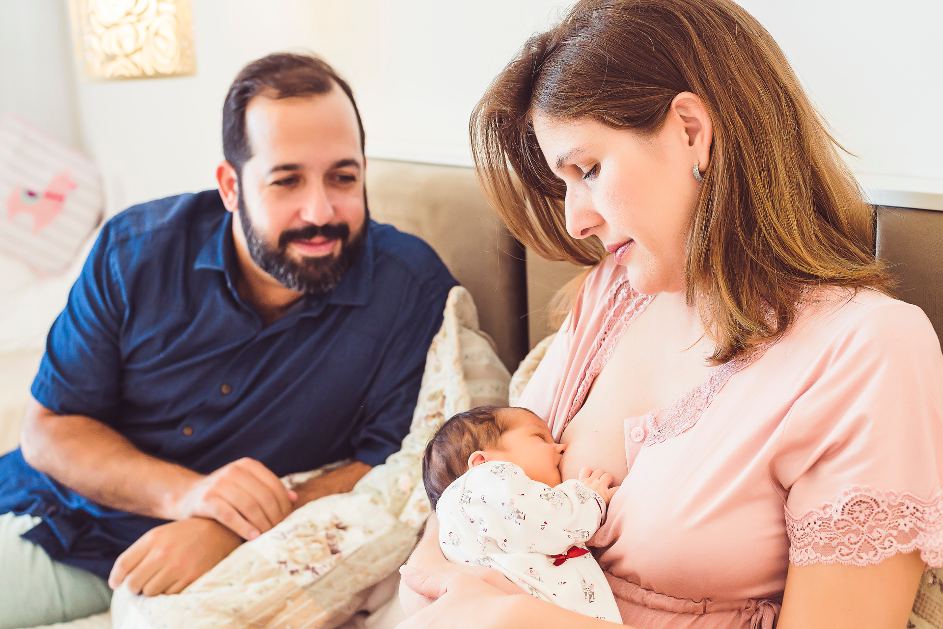 e fotos com os pais (e irmãos), para registrar o colo, os olhares e a emoção desse encontro.